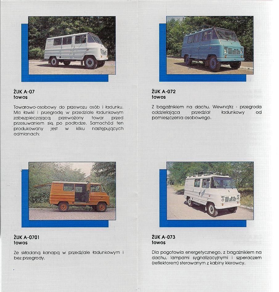 Mimo wielu wad i przestarzałych rozwiązań konstrukcyjnych klienci chętnie wybierali Żuka. Cuda czyniła cena, a także bogata paleta dostępnych wersji. Składało się na nią kilkanaście wariantów, począwszy od podwozia z kabiną, a skończywszy na wozie pożarniczym lub aucie do przewozu kosztowności. W opisywanym okresie sprzedano 4 448 egzemplarzy Żuków. Największym wzięciem cieszył się Towos o oznaczeniu A-07, przewidziany do przewozu ładunków i/lub pasażerów. Przestrzeń ładunkowa została oddzielona metalową pół-przegrodą (do połowy wysokości), a w części pasażerskiej zainstalowano na ścianach bocznych składane ławki dla 5 osób.