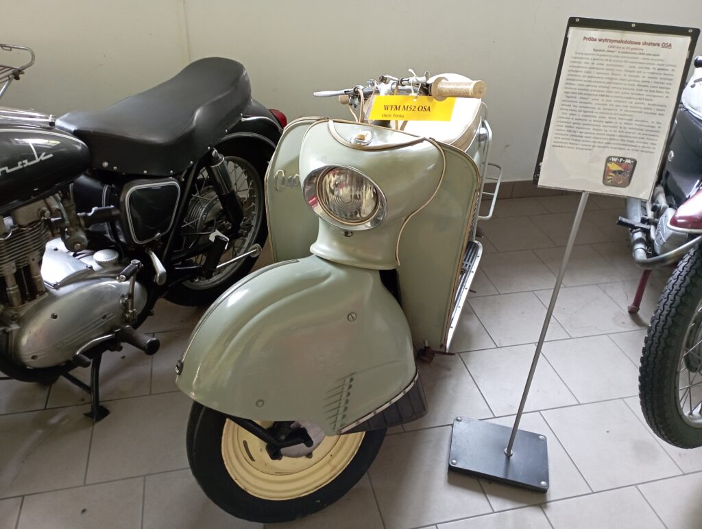 W ostatnim, niedużym pomieszczeniu zwiedzającym prezentowana jest kolekcja złożona z kilkunastu motorowerów, skuterów i motocykli. Wśród nich znalazły się wyroby krajowe, jak i zagraniczne. Pierwszy i jedyny opracowany oraz produkowany seryjnie w Polsce skuter – WFM Osa. Prezentowany w NMT egzemplarz to wersja M52, wytwarzana w latach 1962-1965. Model ten stanowił odmianę rozwojową WFM M50 Osa. Powstał w wyniku doświadczeń z eksportu do Indii. Osę M52 wyposażono w mocniejszy silnik S-33 o pojemności skokowej 175 cm³ i mocy 8,5 KM. W nadwoziu zastosowano elementy z żywicy poliestrowej wzmacnianej włóknem szklanym. Dodatkowo wydłużono siodło, dodano podstawkę boczną, zamontowano zamki kierownicy i siodła, a także przeniesiono dźwignię zmiany biegów na lewą stronę. Przez pierwszy rok produkcji, zmodernizowana Osa trafiała wyłącznie na rynek indyjski. Produkcja skuterów w warszawskiej fabryce została zakończona decyzją odgórną w 1965 roku.