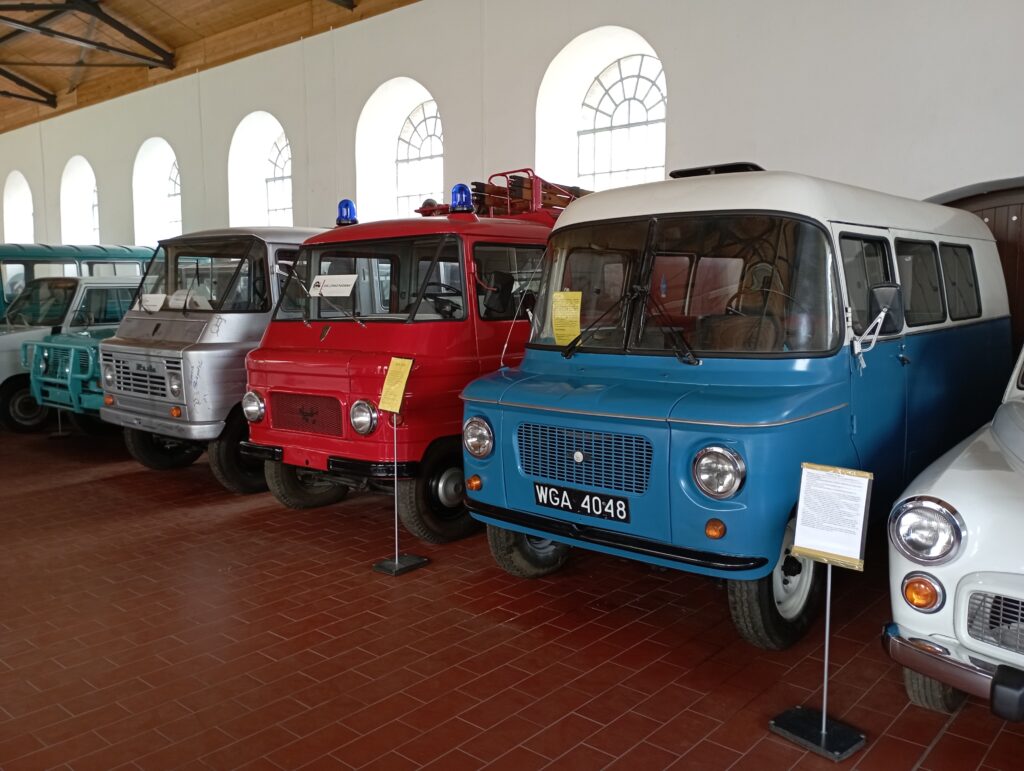 W drugiej dużej hali umieszczono pojazdy różnych typów i z różnych epok. Niestety ze względu na bardzo ciasne ustawienie, dostęp do nich, a nawet robienie zdjęć jest mocno utrudnione. Zaczynając chronologicznie, warto zwrócić uwagę na parkujące pod ścianą dwa Polskie Fiaty 508. W czerwcu 1935 roku Fabryka Samochodów Osobowych i Półciężarowych (FSOiP) przystąpiła do wytwarzania nowego Polskiego Fiata 508/III z całkowicie metalowym nadwoziem typu kareta, 4-biegową skrzynią oraz silnikiem o mocy podniesionej do 24 KM. Nowa „pięćset ósemka” wytwarzana w Warszawie uzyskała dodatkową nazwę „Junak”, która podkreślała polskie pochodzenie auta. W stosunku do włoskiego Fiata 508 Balilla wprowadzono zmiany dostosowujące pojazd do eksploatacji w polskich warunkach drogowych. Wzmocniono ramę, osie, mocowania resorów oraz drążki kierownicze. Zastosowano również opony o większym przekroju, fotele o lżejszej konstrukcji i inne mniejsze zmiany we wnętrzu. Zanim jednak przystąpiono do produkcji seryjnej Junaków, w latach 1934–1935 wypuszczono serię 230 egzemplarzy przejściowego PF 508/II z nadwoziem nowszego typu, jednak z drzwiami otwieranymi pod wiatr i wciąż drewnianym stelażem nośnym jak w typie 508/I. Szary, wyglądający niepozornie egzemplarz Polskiego Fiata, jest właśnie niezwykle rzadkim modelem przejściowym.