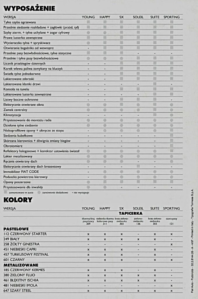 W październiku 1994 roku wprowadzono odmianę Sporting oraz użytkową wersję Van. Sporting charakteryzował się zastosowaniem silnika 1.1 FIRE (54 KM). Zmiany objęły również stylizację nadwozia, z nowym wzorem lakierowanych zderzaków. Dodatkowo Sporting wyróżniał się obudowami lusterek w kolorze nadwozia oraz 13-calowymi felgami aluminiowymi. We wnętrzu zastosowano sportowe fotele, czerwone pasy bezpieczeństwa oraz skórzane koło kierownicy i mieszek lewarka skrzyni biegów. Zestaw zegarów uzupełniono o obrotomierz. Zmiany wprowadzono w układzie jezdnym. Zawieszenie obniżono o 20 mm, utwardzono jego charakterystykę pracy oraz zastosowano stabilizator poprzeczny z przodu.